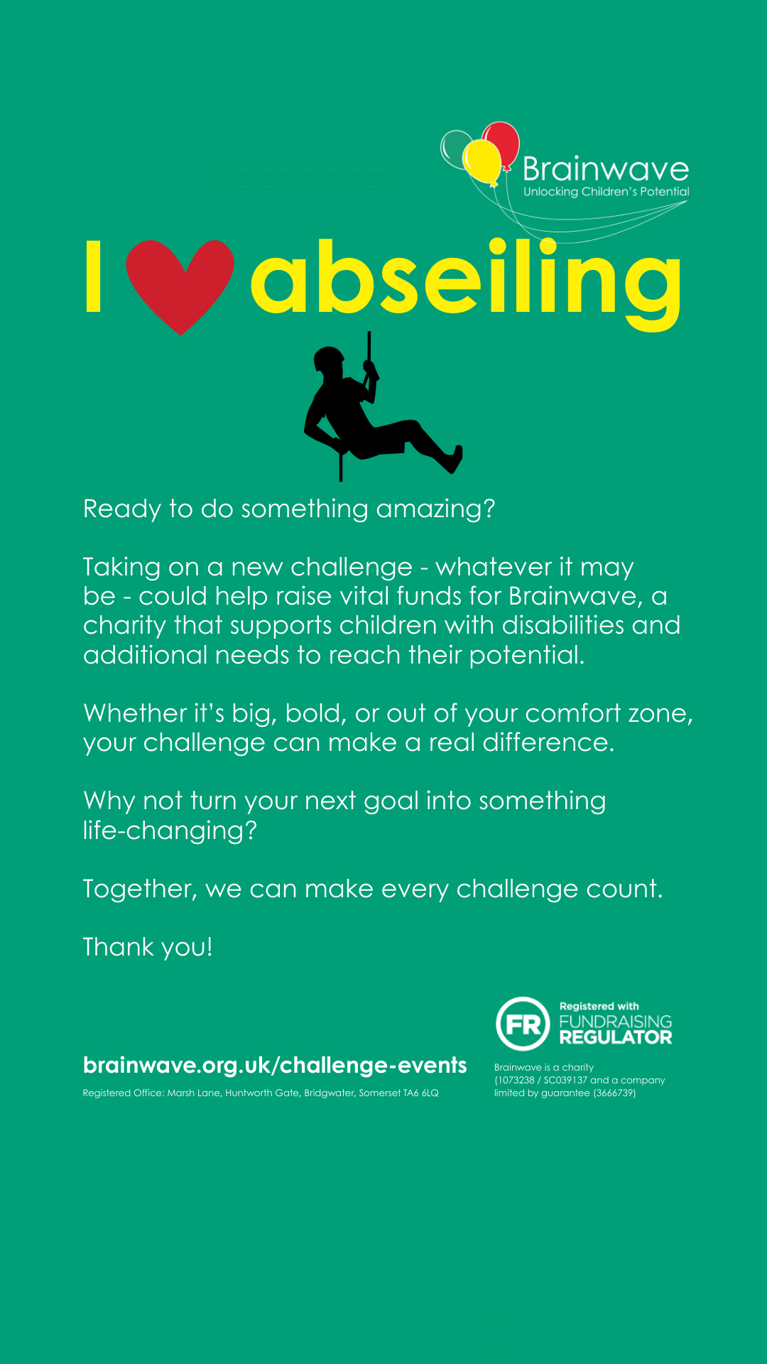 If you are a Brainwave supporter, or you’re looking to support us by holding a bespoke challenge for 10+ individuals, please feel free to contact us or contact Action Challenge, who will be more than happy to help you with the planning and organisation.