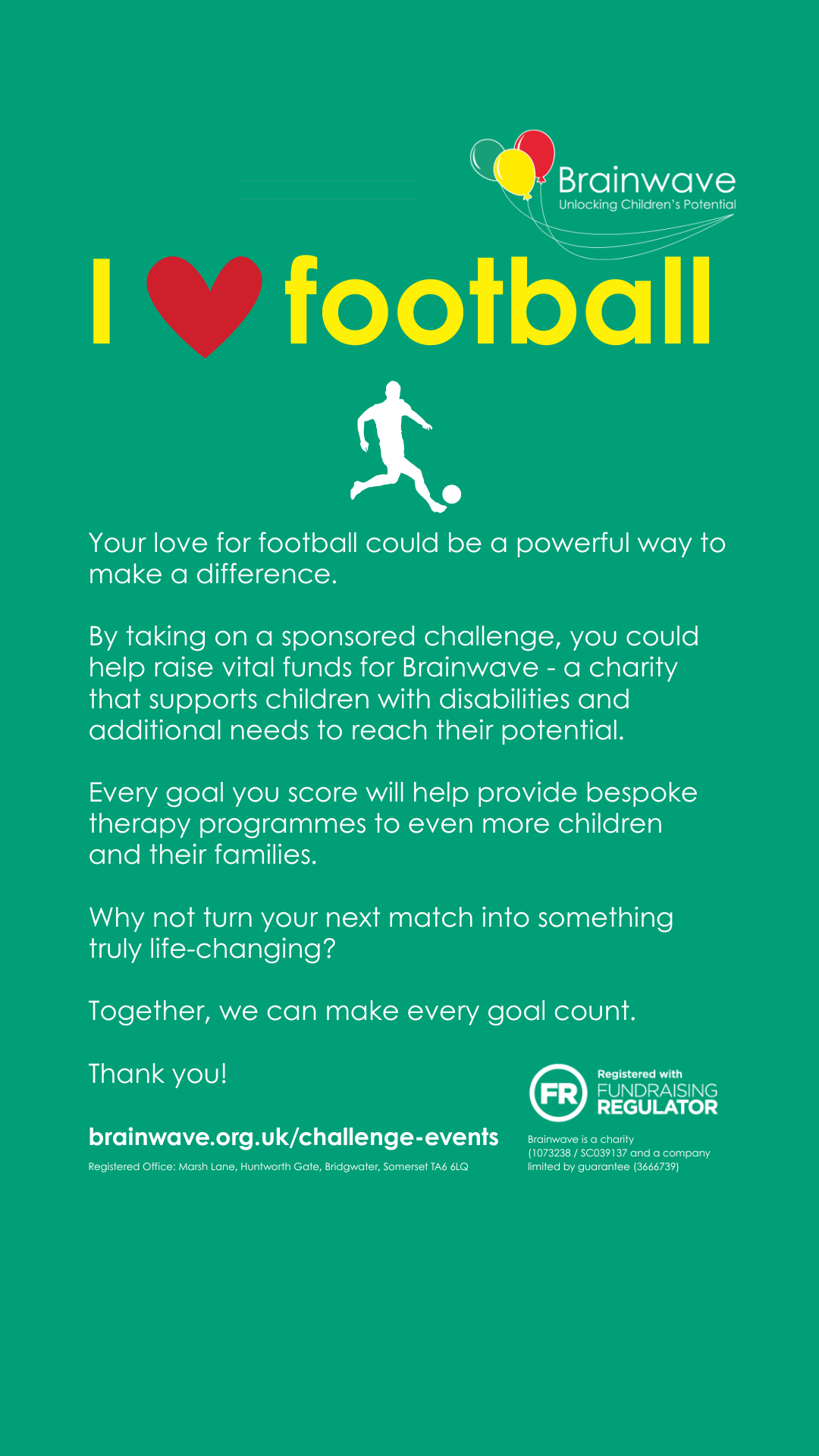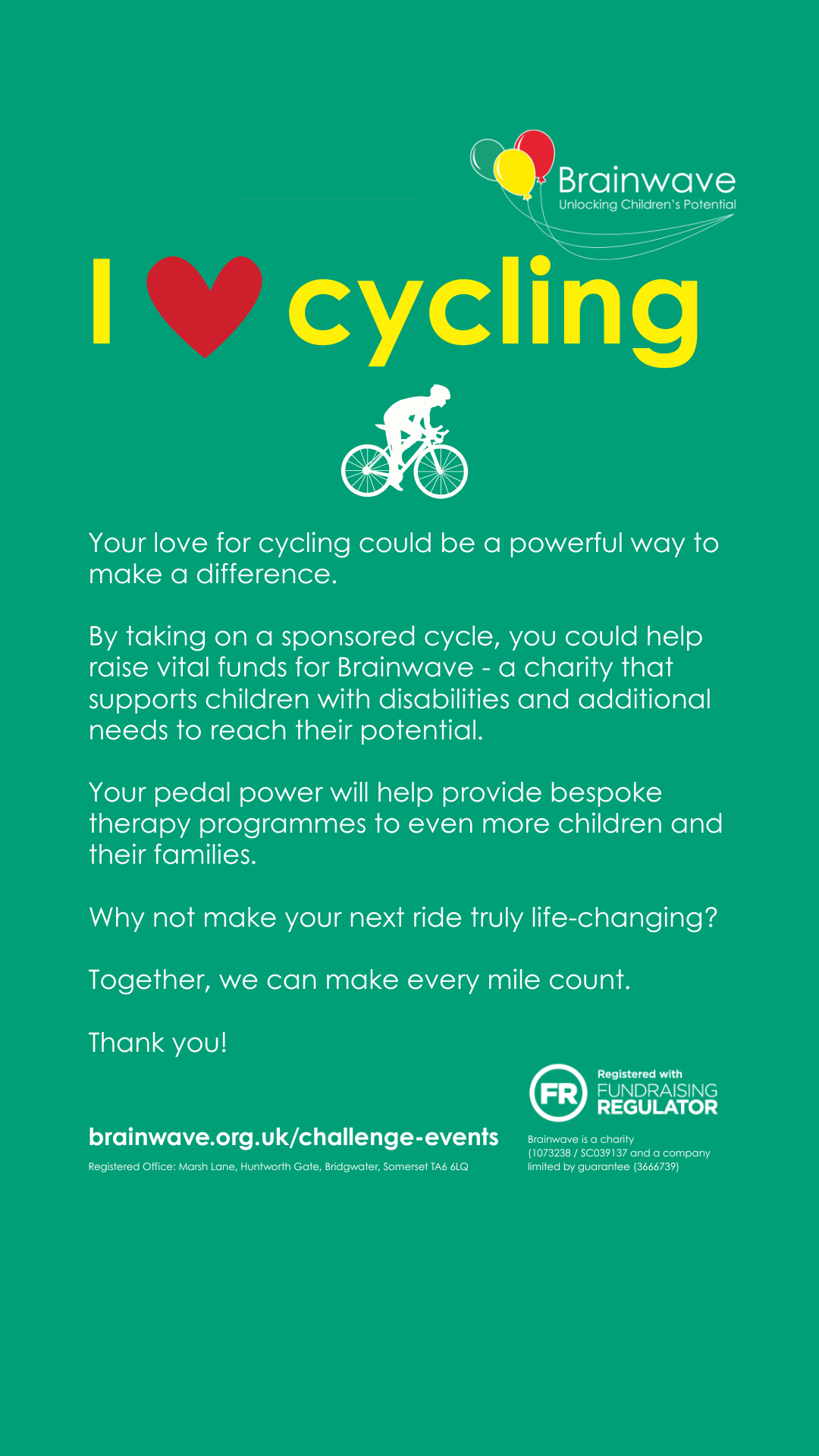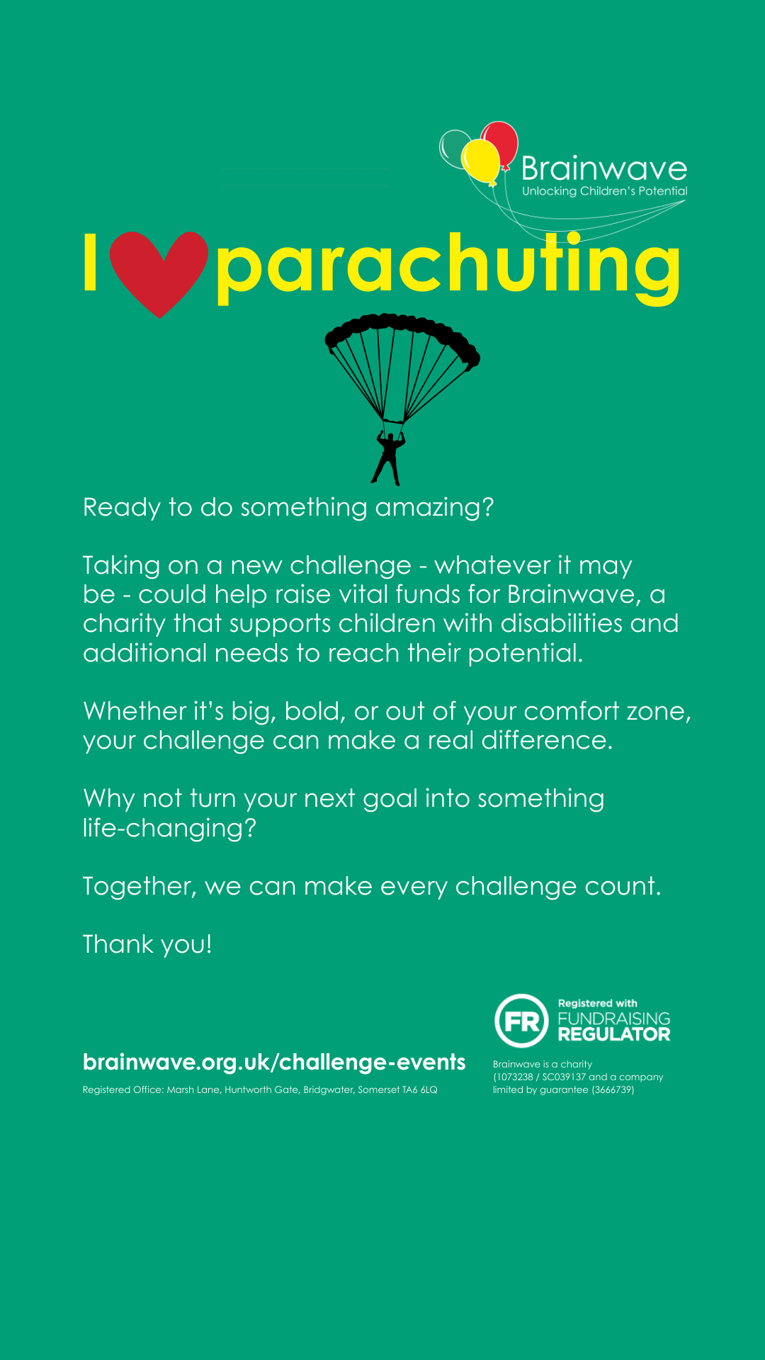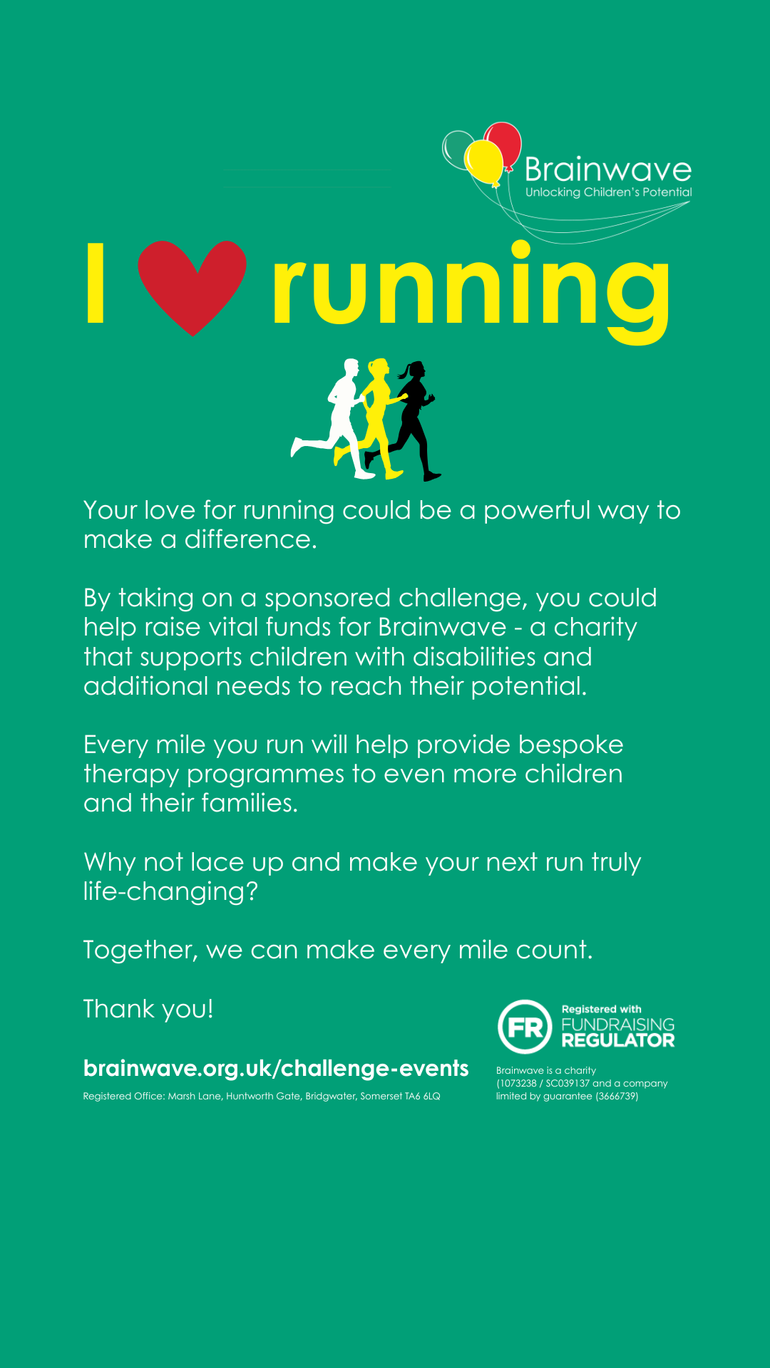 - Set up a Justgiving Page – Brainwave – JustGiving or get sponsorship forms from us and let everyone know.