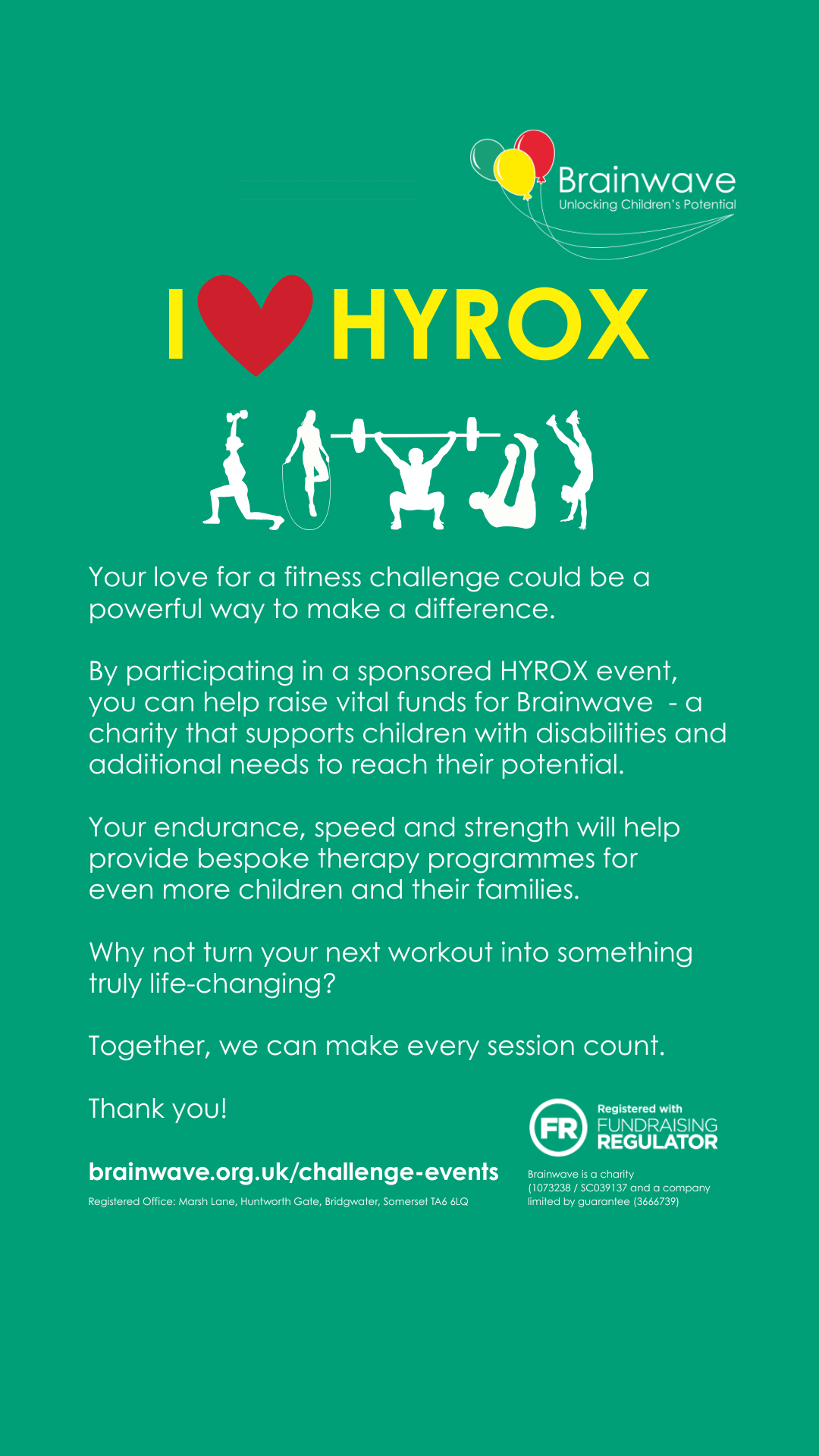 For more information or support please email fundraising@brainwave.org.uk or call 01278 429089.